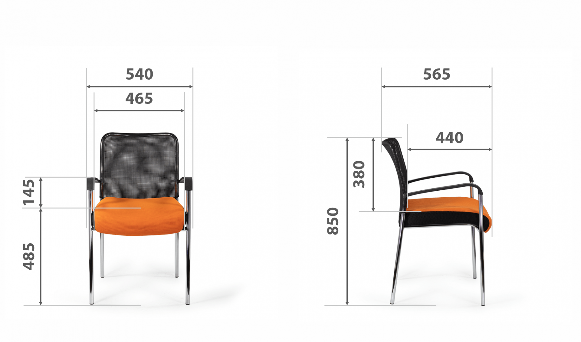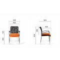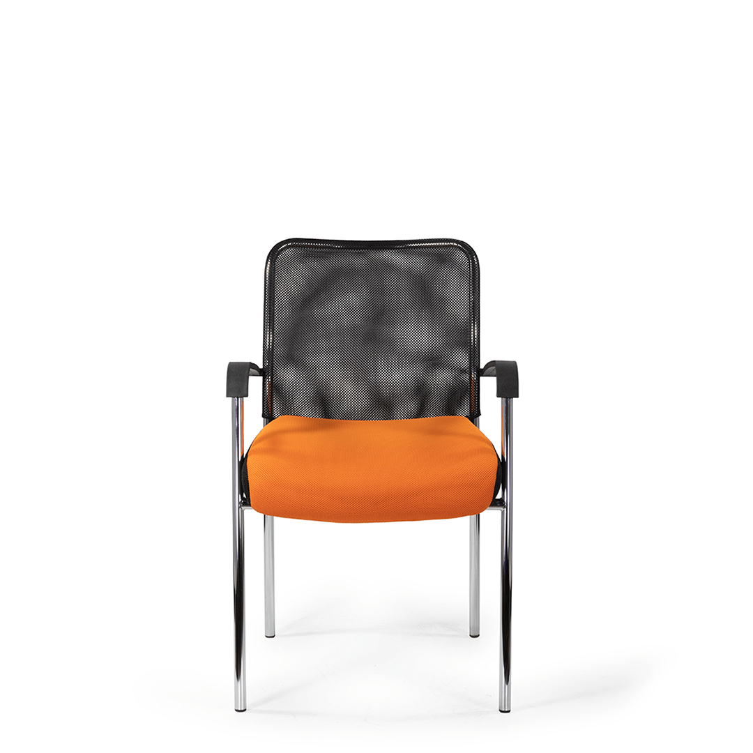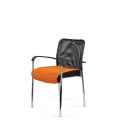 Кресло для посетителя изготавливается с мягким сиденьем, оригинальной спинкой, выполненной из сетчатой ткани и пластиковыми подлокотниками.