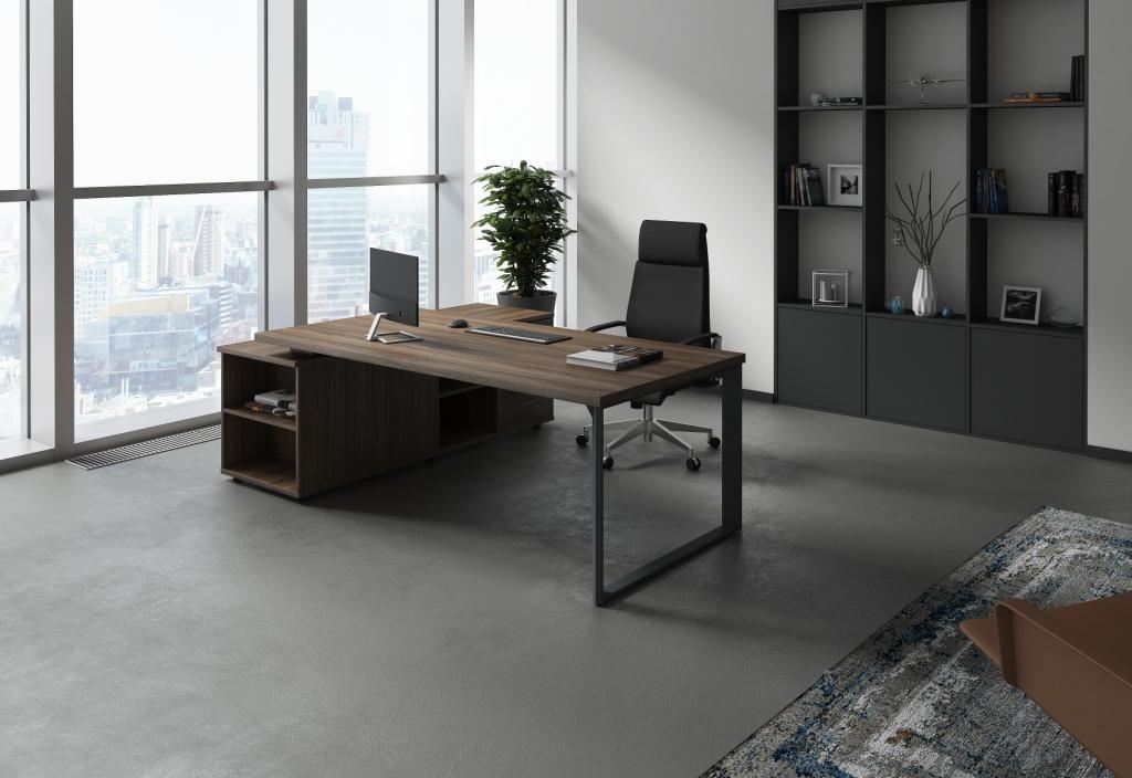 Оригинальное сочетание массивной столешницы и изящных металлических опор с расположенными под углом 45° к столешнице вертикальными стойками придаёт коллекции неповторимый шарм.