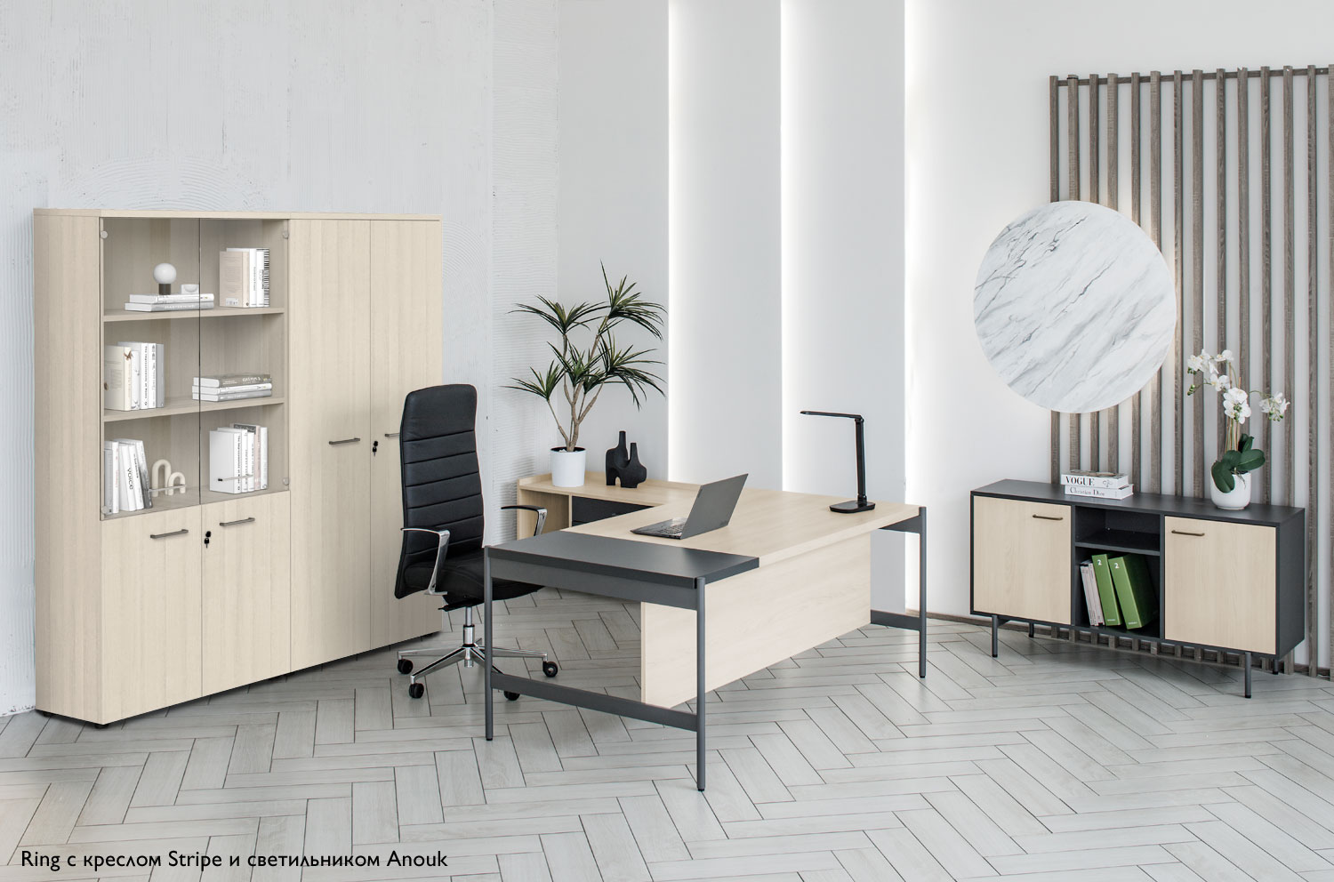 Указана оптовая цена за RING Стол письменный L180 SxDx ДУБ СВ/ГРАФИТ/АНТРАЦ при единовременной закупке продукции в количестве от 100 штук в базовом исполнении.