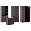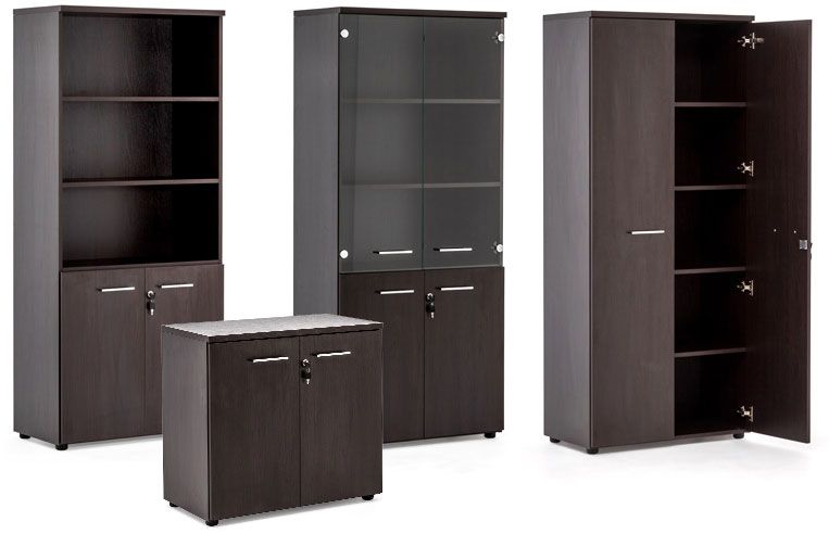 Стеллажи. Система шкафов может быть дополнена стеллажами "Faro" в белом цвете или цвете венге.