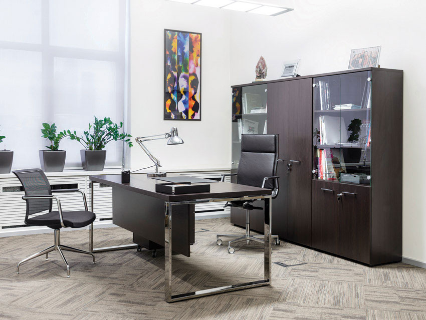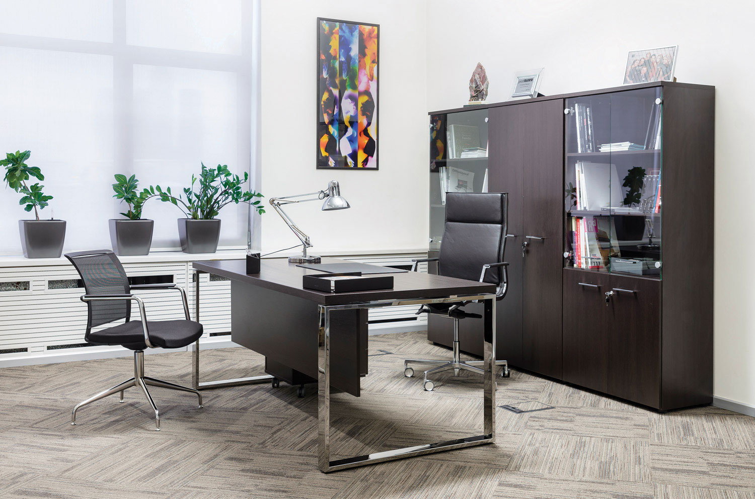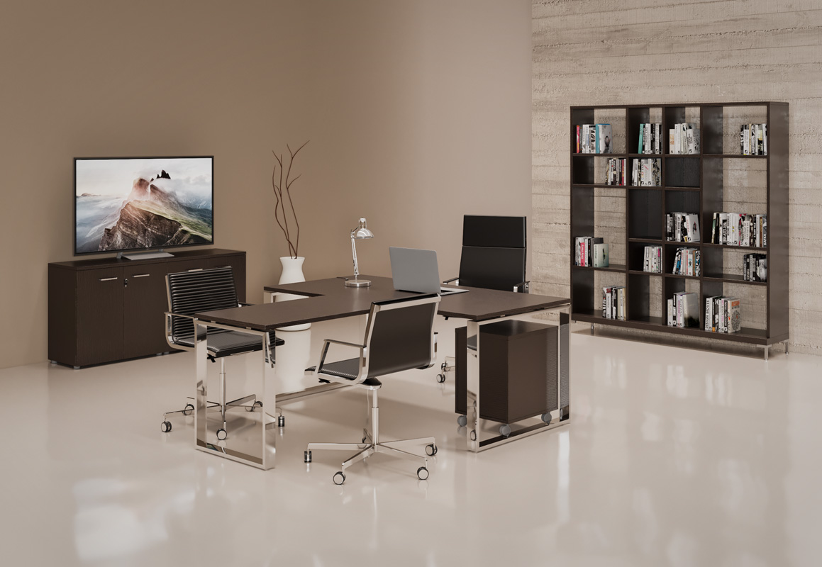 Кабинет "Rotonda" — воплощение стиля и надежности. Современный дизайн кабинета в сочетании с классическим натуральным цветом дерева придаст деловой вид вашему офису. Широкий выбор шкафов и несколько вариантов столов для переговоров делают этот кабинет универсальным.