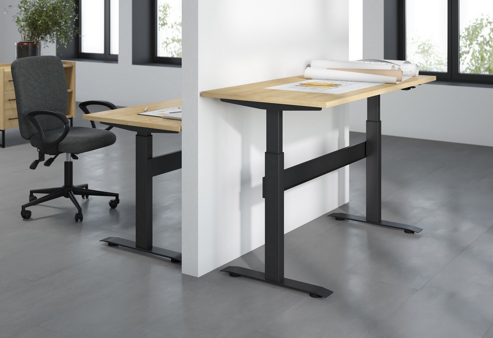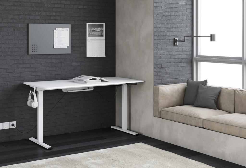 Столешница из ЛДСП т.16мм, кромка ПВХ т.2мм. Металлокаркас из профиля трубы, в основании 50х20х2мм, телескопические опоры 45х45х1,5мм и 50х50х1,5мм. Основание подстолья толщиной 2,5мм с траверсой толщиной 1,5мм. Стол комплектуется 2-мя метллическими крючками с толщиной металла 1,5мм и подвесным кабель-каналом. Металлокаркас комплектуется одним мотор-подъемом и пультом управления для регулировки высоты стола.