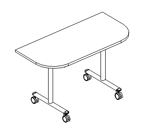 Каркас с интегрированным устройством для складывания столешницы – поворота ее вокруг горизонтальной оси в вертикальное положение для хранения в компактном виде.