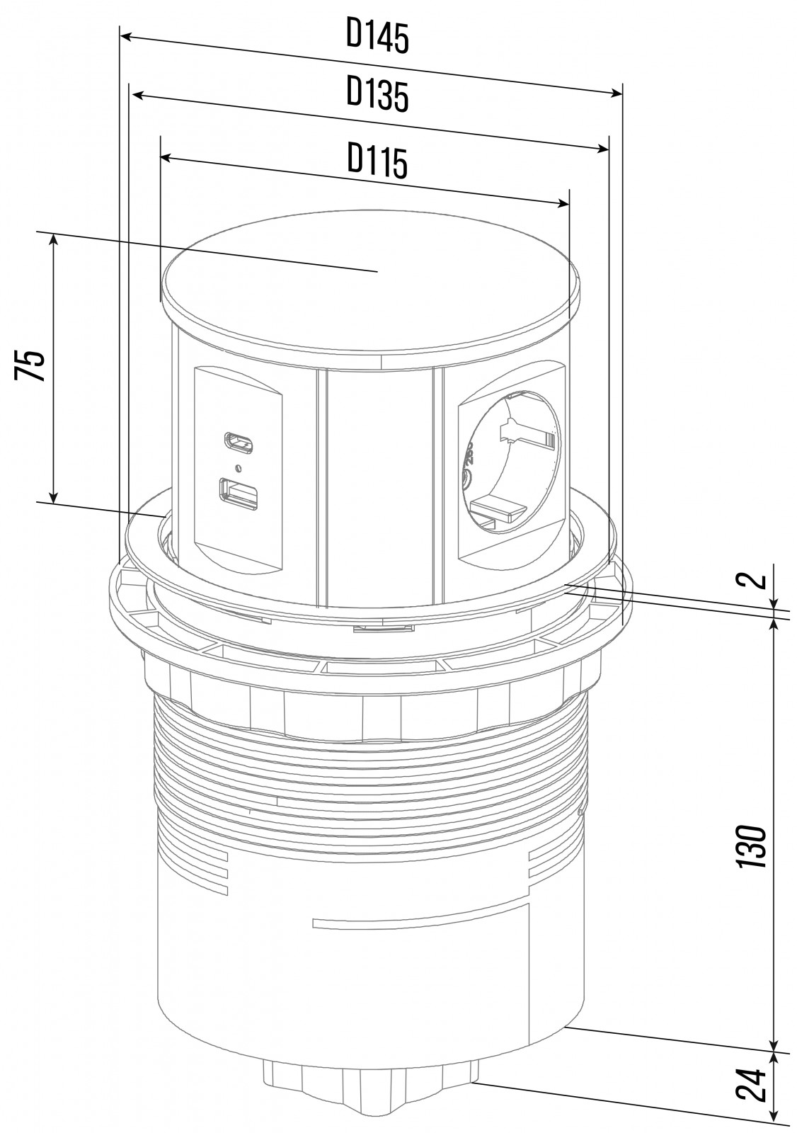 Блок розеток G10703N-2AC.N выдвижной вертикальный